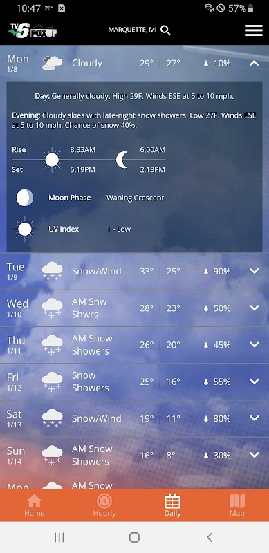 وTV6 وFOX UP الطقس التطبيقات تشمل ما يلي: