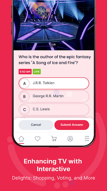 يفتح TVString عالمًا من الاحتمالات. إذا سبق لك أن شاهدت منتجًا على شاشة التلفزيون وأردت معرفة المزيد عنه أو شرائه، فإن TVString يجعل الأمر سهلاً مثل مسح رمز QR ضوئيًا. بالنسبة إلى البرامج التلفزيونية التي تجذب المشاهدين من خلال الاختبارات، يمكنك الانضمام إلى البث المباشر والمساهمة في استطلاعات الرأي والاستمتاع بتجربة تلفزيونية أكثر تفاعلية.