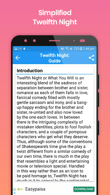 This Guide app works both online and offline, and contains 23 basic topics about one of the famous plays of William Shakespeare, Twelfth Night.