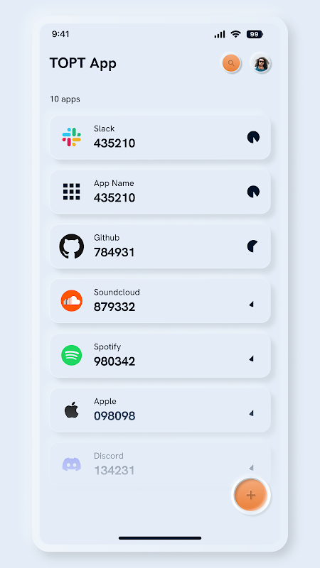 🚀 الميزات الرئيسية ✅ إنشاء OTP سريع وآمن قم بإنشاء رموز TOTP على الفور لأي خدمة تدعم المصادقة الثنائية (2FA)، بما في ذلك المنصات الرئيسية والتطبيقات المخصصة.