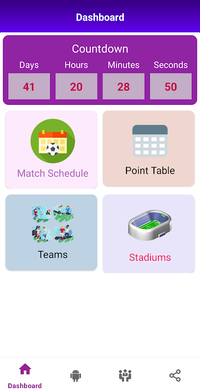 يوفر التطبيق جدول المباريات والمعلومات الأخرى المتعلقة بمباراة كرة القدم.