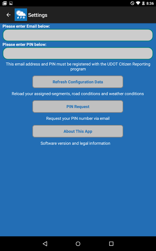The UDOT Citizen Report app gives volunteers direct access to report road and weather conditions to UDOT, thereby assisting thousands of other drivers who are traveling on Utah roads. Up-to-date road condition information is critical. By downloading this app and becoming a volunteer reporter, you will be helping to gather road and weather data on Interstate, U.S. and State highways throughout the state of Utah.