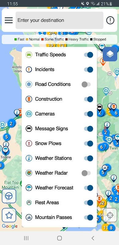 يوفر تطبيق UDOT Traffic للركاب والمسافرين إمكانية الوصول عبر الهاتف المحمول إلى المعلومات الخاصة بالطرق في ولاية يوتا من نظام النقل الذكي التابع لوزارة النقل في ولاية يوتا (ITS). المعلومات المتاحة تشمل: