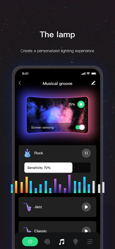 من خلال تطبيق الهاتف المحمول، يمكنك التحكم بذكاء من خلال تطبيق الهاتف المحمول، يمكنك التحكم بذكاء في اللون والسطوع ودرجة حرارة اللون لمصابيح الشريط Symphony LED. يمكنك أيضًا ضبط أوضاع الوميض المختلفة، مما يسمح لأضواء شريط Symphony LED بالمزامنة مع إيقاع الموسيقى. طالما أن شريط Symphony LED قيد التشغيل، افتح تطبيق Symphony Lotus Light على هاتفك الذكي، وقم بتوصيل شريط LED واحد أو أكثر عبر Bluetooth، ويمكنك تحقيق إعدادات وعناصر تحكم متنوعة لشرائط LED متعددة. العملية بسيطة للغاية وسهلة التعلم!