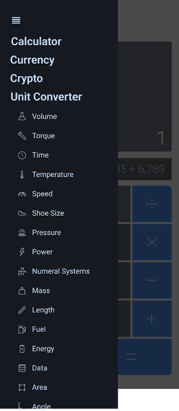 محول الوحدات والآلة الحاسبة ومحول العملات / التشفير في جهاز واحد