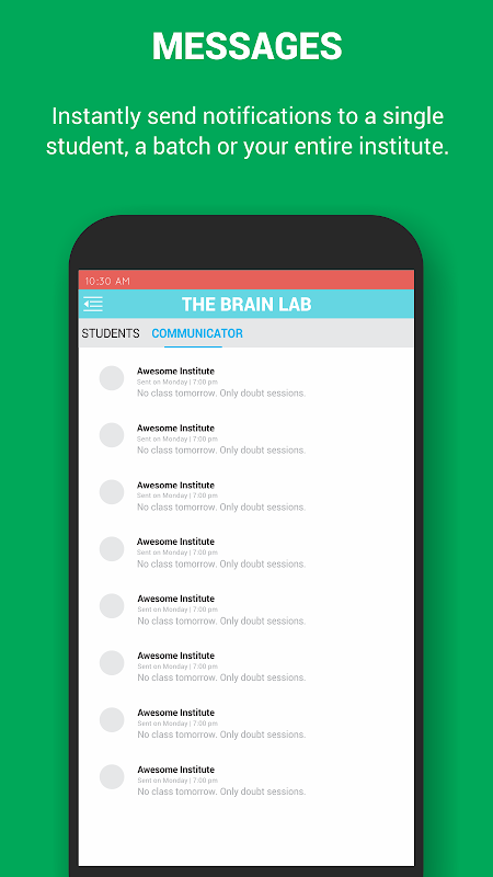 A simple and user friendly app for students and parents to get real time updates from your institute.