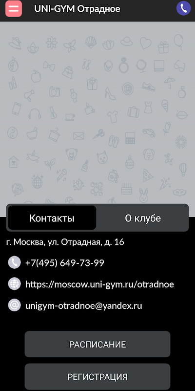 الجداول الزمنية UNI-GYM Otradnoye - التقويم والمرشحات والتسجيل والحساب الشخصي.