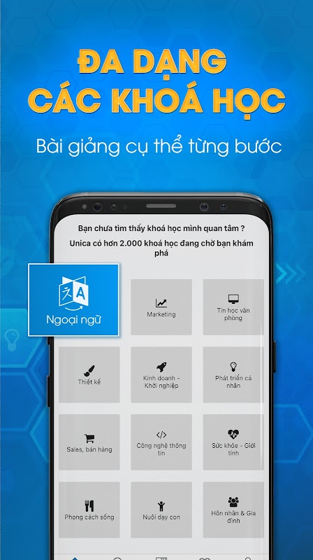 🎓 Unica - Nâng tầm tri thức. Chúng tôi luôn mong muốn được đồng hành cùng bạn trong quá trình học tập để chạm tới ước mơ nhanh nhất. Tải ứng dụng Unica để học trực tuyến ngay trên điện thoại của bạn bất cứ khi nào.