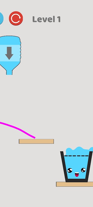 كيف تلعب اللعبة: اسكب الماء في الزجاجة عن طريق عمل خطوط مساعدة ، واضغط على الشاشة ثم انزلق لعمل نمط من الخطوط الإضافية بحيث يسقط الماء الذي يتم سكبه في الكوب مباشرة. ثم اضغط على الزجاجة وسيتم سكب الماء