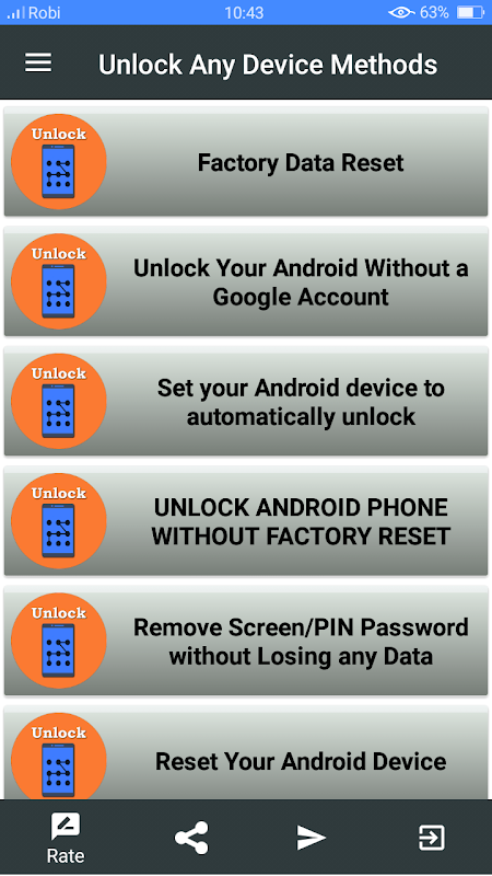 This app provides to unlock any android devices and others. Unlock device by remove password, unlock without account and much more features.