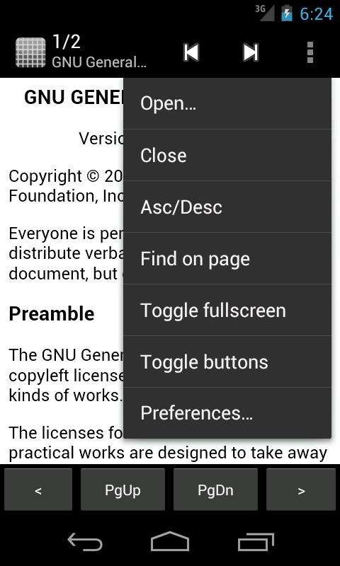 * الاستمرار على زر صفحة الى الأعلى / صفحة الى الأسفل، يمكنك تبديل إظهار أو إخفاء actionbar مؤقتا (قرص العسل في وقت لاحق).
