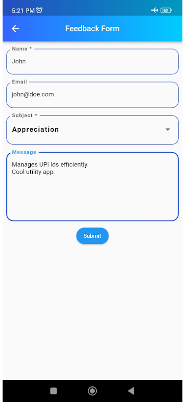 UPI Manager هو تطبيق مفيد مصمم لإدارة عملية دفع UPI الخاصة بك في وضع عدم الاتصال. باستخدام UPI Manager ، يمكنك بسهولة إنشاء رموز QR مخصصة لمعرفات UPI الخاصة بك ومشاركتها مع عملائك لعملية دفع أسرع. هذا يعني أنه يمكنك عرض رمز الاستجابة السريعة في متجرك أو على فواتيرك ، ويمكن لعملائك ببساطة مسحه ضوئيًا وإجراء مدفوعات لمعرفات UPI الخاصة بك دون الحاجة إلى أي اتصال بالإنترنت.