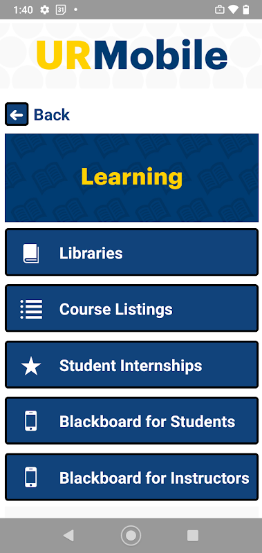 UR موبايل هو التطبيق المحمول الرسمي لجامعة روتشستر. يمكنك استخدام التطبيق على مدار اليوم للعثور على المعلومات الضرورية وللتحقق بسرعة جداول الحافلات، وتصفح الأحداث، البحث في الدليل، وخدمات الطوارئ والوصول، وأكثر من ذلك بكثير.