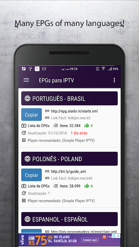 📌 Urls of EPGs to put on IPTV / Smart TV Players / Box TV ...