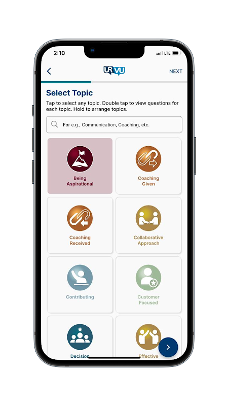 يعد الحصول على تعليقات عملية في الوقت الفعلي حول الأداء الشخصي طريقة قوية للنمو على المستوى المهني والشخصي. يمكّن تطبيق URVU هذا بطريقة بناءة ، بشكل مجهول إذا رغبت في ذلك ، ويتتبع التحسن بمرور الوقت. يتيح الاختيار من بين 32 موضوعًا تغطي جميع مجالات التفاعلات المهنية تقريبًا ، ويقدم لكل موضوع ملاحظات مقابل 3 معايير مباشرة.