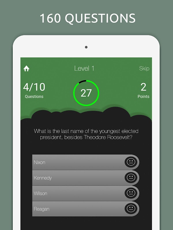 يتم خلط الأسئلة والإجابات التافهة بشكل عشوائي في كل مرة تلعب فيها. يمكنك تخطي سؤال ، إذا كنت لا تعرف الإجابة. لعب متعددة واحدة على واحد مع أصدقائك!