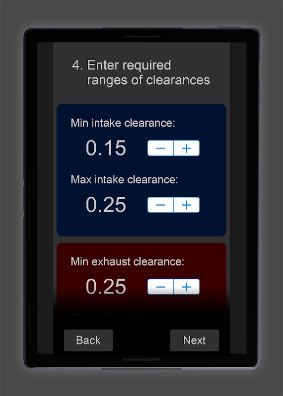 أحد أسباب طرقات المحرك غير السارة هو الخلوص غير الصحيح للصمامات. يهدف هذا التطبيق الصغير إلى مساعدتك في الحساب وإجراء إعادة ضبط أفضل لوضع حشوات الصمام (الروافع ، الغمازات) عند ضبط الخلوص.