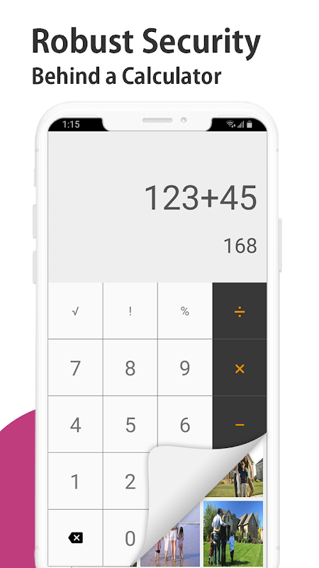 قم بتشغيل التطبيق في خصوصية وسرية تامة. استخدم رمز الآلة الحاسبة لتشغيل التطبيق ، واستخدم شاشة الآلة الحاسبة لتسجيل الدخول في قبو.