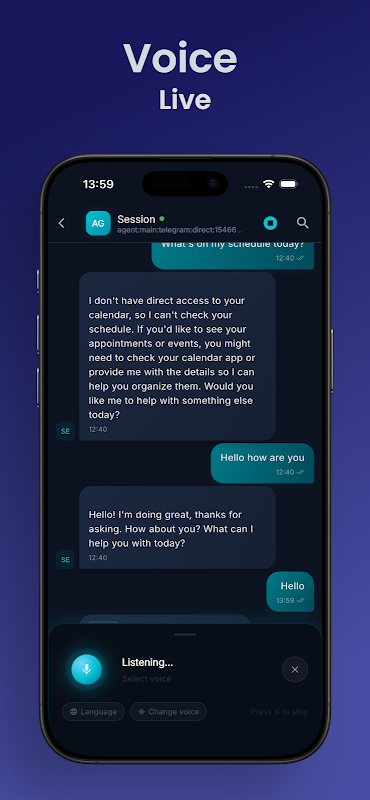 راقب حالة بوابتك فورًا، وتتبع سجلات النظام، وأدر مهامك المجدولة بسهولة. يوفر VClaw، المُحسَّن للتفاعل السلس مع نماذج LLM، خيارات اتصال آمنة تمنحك تحكمًا كاملًا في بياناتك. صُمم VClaw لتحويل بنية الذكاء الاصطناعي الخاصة بك إلى تجربة جوال احترافية، مما يتيح لك إدارة عمليات التشغيل الآلي من أي مكان.