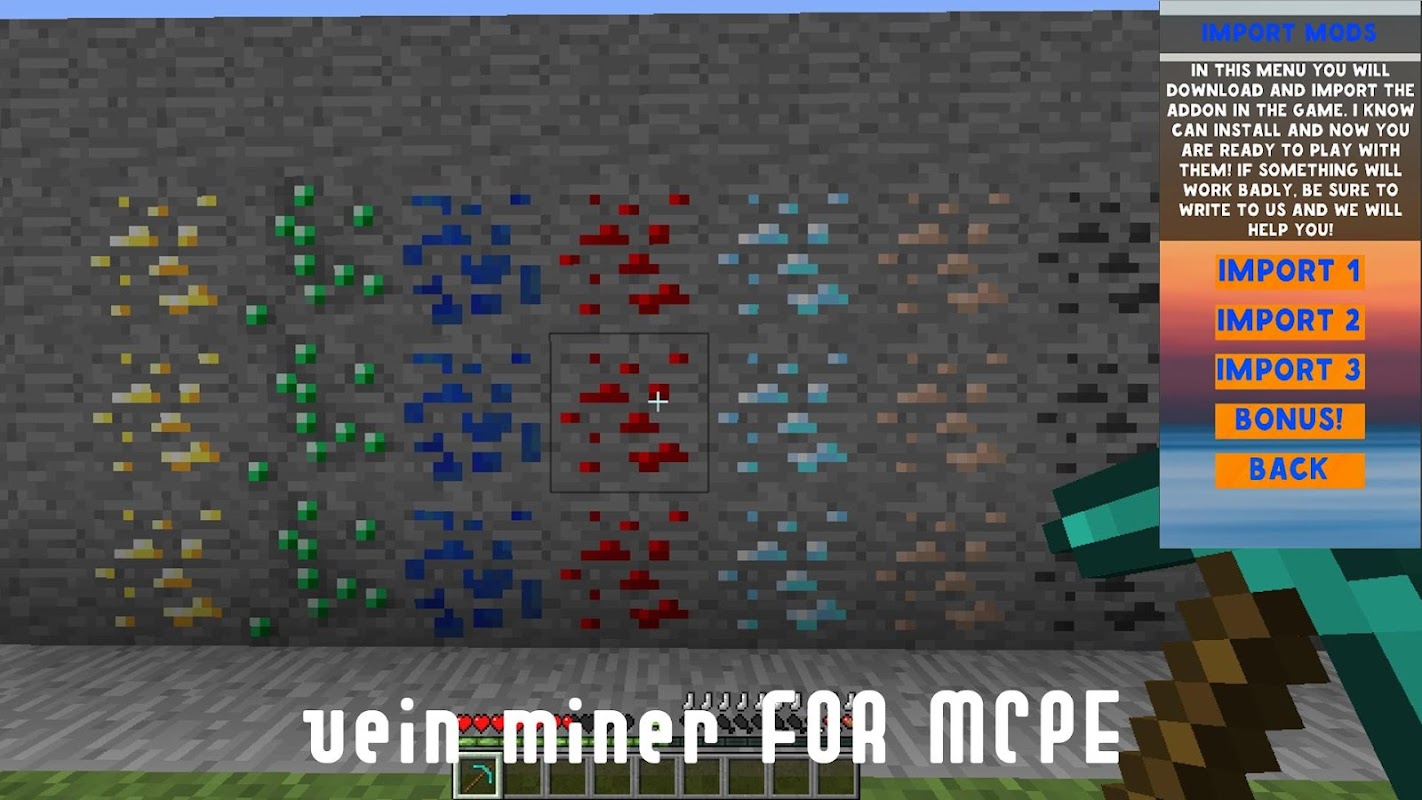 سيضيف ❗Vein Miner Mod لـ Minecraft PE❗😋 ملحقًا رائعًا. ستتاح لك فرصة رائعة لتنويع لعبة MCPE الخاصة بك إلى الأبد باستخدام خامات وميزات خريطة الوحش المذهلة!