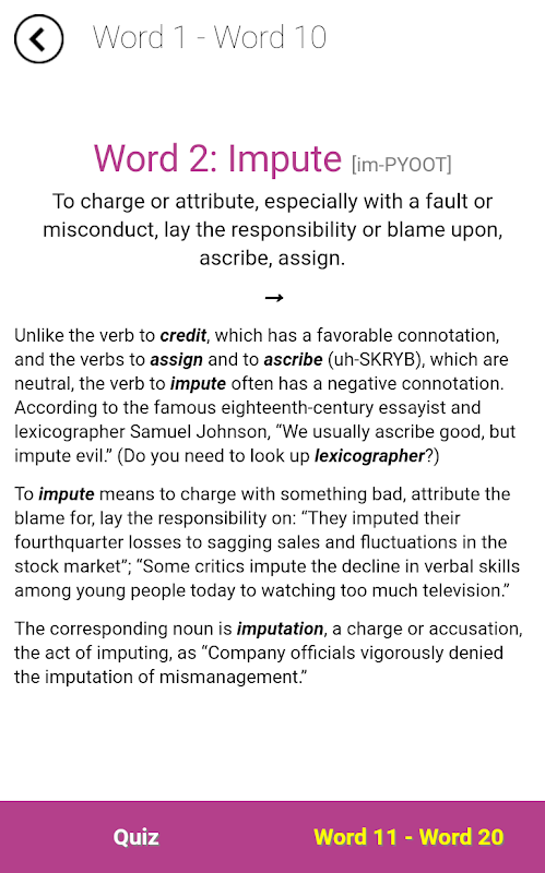 توفر ميزة اللفظية تجربة تعليمية كاملة، مع تفسيرات واضحة المعاني وتاريخها كلمة، الأعراف، والنطق، وأكثر من ذلك. أكثر بكثير من مجرد جلسة الالزام لاختبار موحد، ويهدف الكتاب كبناء عمر المفردات، وتعليم المفردات لا يشاركهم فيها نسبة أعلى من الأميركيين، مع طريقة ثبت أن يساعد على معرفة الماضية.