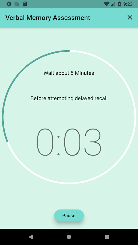 The Verbal Memory Assessment App is a tool for verbal memory assessment in a clinical setting. It is intended for health professionals familiar with cognitive assessment. It provides a 10-word-list for immediate recall, delayed recall and recognition based delayed recall. Suggested cut-scores are provided as assessment for normative data has not been done.