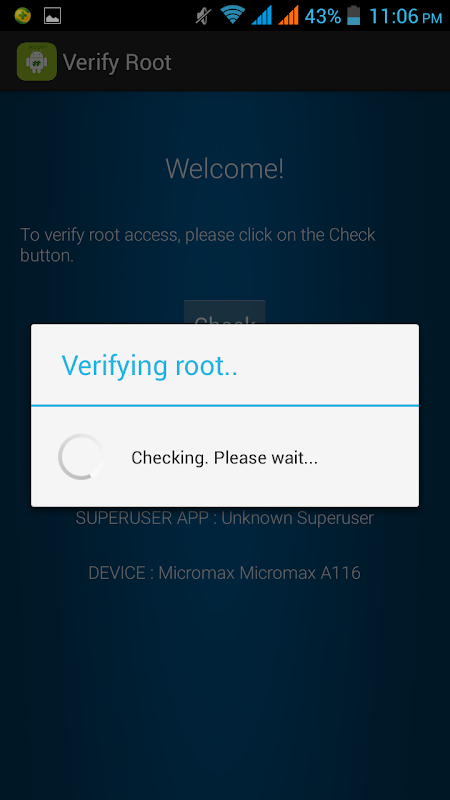 Root Verifier is a free software: By using verify root you can check your android phone is rooted or not.