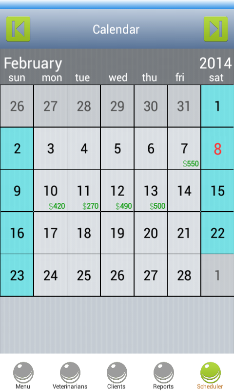 ★ يظهر قسم "الجدولة" في شكل تقويم يعرض المواعيد والأرباح اليومية. يمكن بسهولة جعل المواعيد الجديدة عرض هذا المجدول ، ويمكن الاطلاع على السجل الكامل والبيانات من تاريخ معين بما في ذلك تفاصيل الوظيفة والأرباح والمواعيد من خلال تحديد تاريخ معين من تقويم المجدول. الكل في البرامج البيطرية في حل شامل واحد لجميع مشاكل الإدارة قد يكون مركز بيطري.