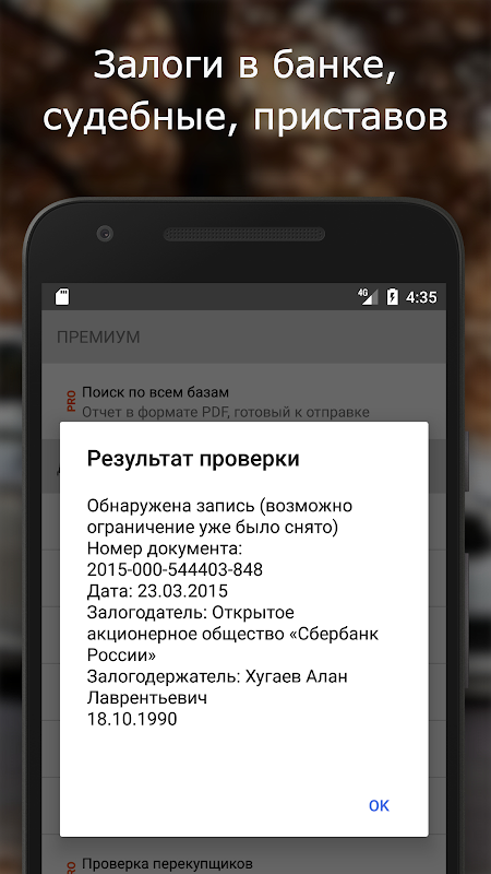 التطبيق الأول والوحيد الذي يدعم جميع قواعد البيانات لالشيكات. حادث، قاعدة شرطة المرور والبنوك على الودائع والمحضرين، لوالمعلومات والمزايدة على تقارير كارفاكس، والسرقة، والتدقيق على أساس المالك FSSP تاكسي التسجيل.