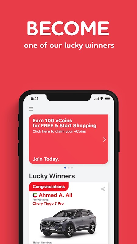 يوفر تطبيق فينكو منتجات و خدمات لعلامات تجارية حصرية بالإضافة إلى منتجات عديدة و متنوعة من علامات تجارية محلية و عالمية. والعلامة الفارقة للتطبيق تكمن في فرصتك لربح جوائز عالية القيمة و فخمة، حيث أن شراء بعض المنتجات يمنحك الفرصة لدخول السحب على هذه الجوائز. قائمة الجوائز التي نوفرها تضم سيارات، ذهب، الكترونيات، و المزيد من الجوائز القيمة.