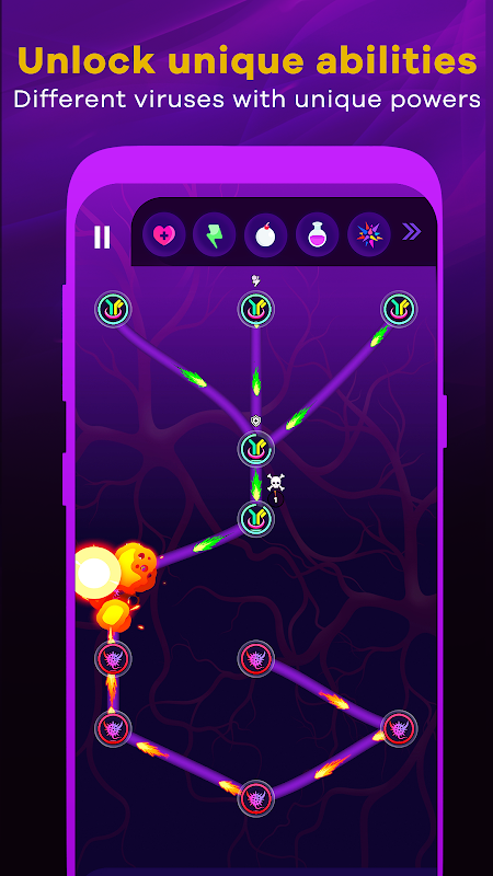 تقديم Virus Defeat - لعبة ألغاز إستراتيجية مثيرة للإدمان وصعبة ، ستختبر عقلك. تدور اللعبة حول محاربة الفيروسات مثل الأجسام المضادة في مستويات التحدي ، ستحتاج إلى استخدام كل مهاراتك الإستراتيجية لاختراق جميع الفيروسات والقضاء عليها في كل مستوى. لمساعدتك ، سيكون لديك 5 وحدات طاقة: