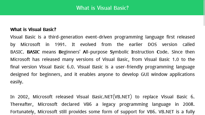 Learn Visual Basic .NET Programming Course App Feature: