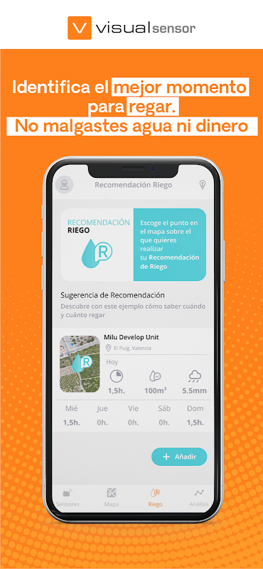 VISUAL SENSOR هي خدمة مراقبة دقيقة للمناخ والتربة للمحاصيل ، والتي توفر 15 معيارًا مناخيًا زراعيًا كل 21 دقيقة. إنها نتيجة عمل بحثي حول أفضل الحلول الحالية لتحسين كفاءة واستدامة المحاصيل ، فهي تساعد على تحسين استهلاك المياه وتحديد الوقت الأمثل لإجراء العلاجات.