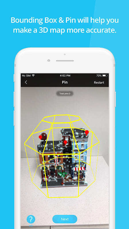 1. [إنشاء الخريطة]: يمكنك إنشاء ملفات خرائط عن طريق تعيين كائن ومساحة متوسطة الحجم (حجم 0.3 م ~ 1.5 م). يوفر MAXST Bounding Box و Pin UI التي تساعدك في عمل خريطة ثلاثية الأبعاد أكثر دقة.