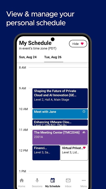 بسّط سحابتك وصمّم مستقبلك. كن على اطلاع دائم وابقَ على اتصال دائم مع تطبيق VMware Explore للأجهزة المحمولة. يمكن للمشاركين في الفعاليات الوصول إلى جداولهم الشخصية، وجدول أعمالهم، وملفات تعريف الرعاة، ومعلومات الجلسات، وغير ذلك الكثير.