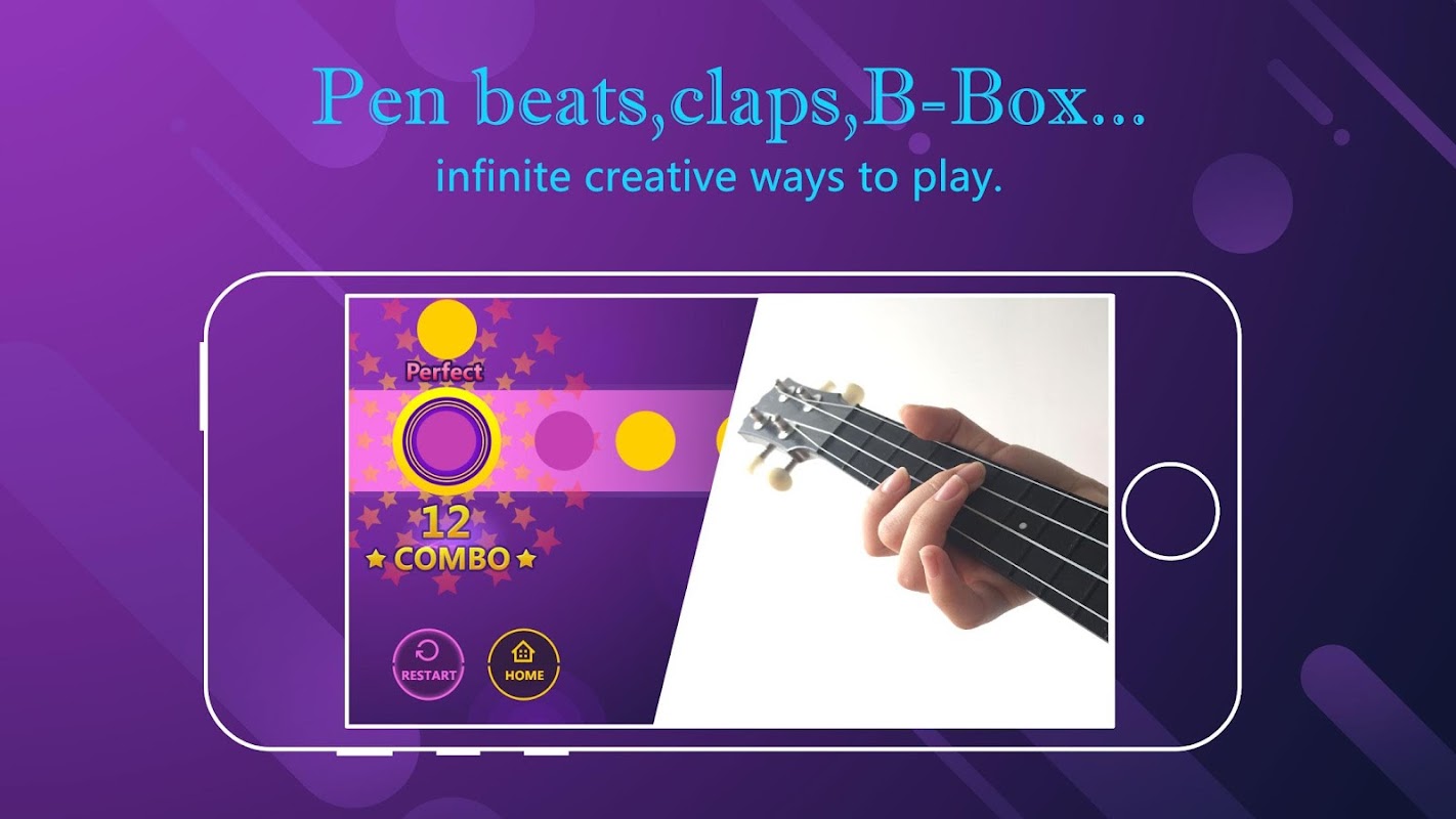 Shout, yell, scream or just hit anything you want to follow the rhythm of music. Voice Note Blast will listen to your play and calculate your points.