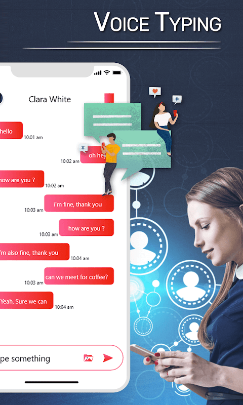 Voice typing is a simple app and user friendly application. The text appears after you done Talking. Once you get the regularity, you can use the app and send, share long texts and articles in other social media and many social media messaging application. voice typing Supports more than 70 different languages. Convert your voice into text with Voice to Text! Voice to Text allows you to share your text messages to Whatsapp.