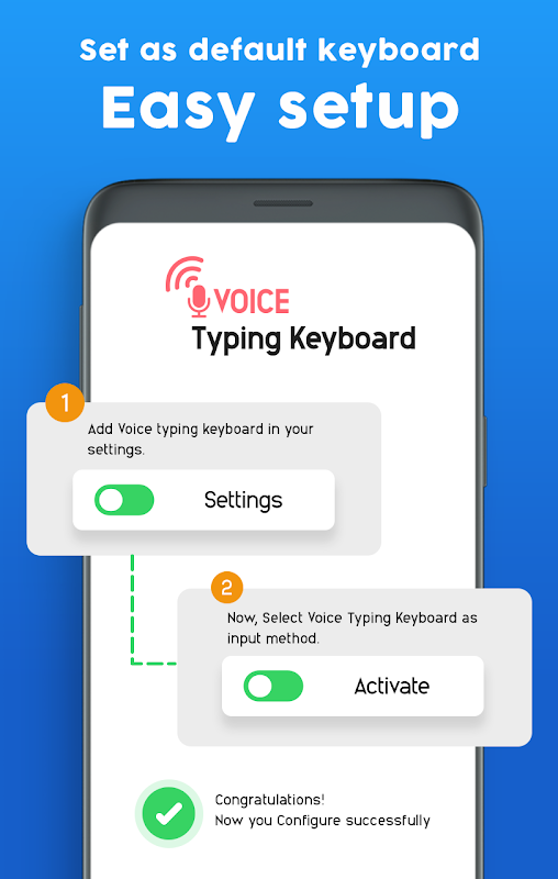 Voice Typing Keyboard - تطبيق تحويل الكلام إلى نص يجعل كتابة هاتفك المحمول أمرًا سهلاً! يمكنك بسهولة كتابة النص عن طريق الملاحظات الكلام. تم تصميم تطبيق Voice to text للكتابة ليوفر لك طريقة سهلة وسريعة لإرسال رسالتك النصية والاستمتاع بالكتابة المجانية المزعجة باستخدام الإملاء الصوتي الخاص بك بدون وقت. فقط اضغط على الميكروفون للتحدث وبعد بضع ثوان تتحول رسالتك الصوتية إلى رسالة نصية ، راجع النص وإذا وجدت أي مشكلة في النص المكتوب ، فقلها مرة أخرى. الرسالة الصوتية إلى التطبيق النصي بسيطة للغاية ومجانية لجميع مستخدمي أندرويد. يمكنك نسخ ومشاركة وحفظ النص المكتوب والعودة إليه. الصوت إلى النص هو تطبيق رائع بالنسبة لك إذا كنت تريد كتابة نص أو مقالة فقرة طويلة.