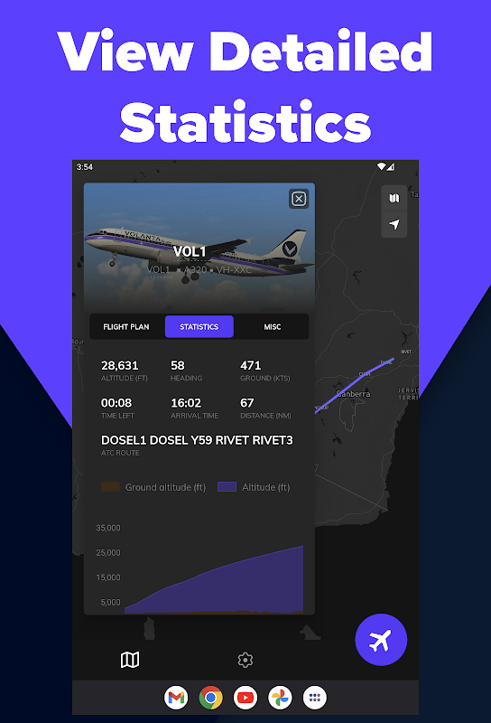 - عرض تفاصيل الرحلة الخاصة بك مثل إشارة النداء والطائرة ومطارات المغادرة والوصول والطقس