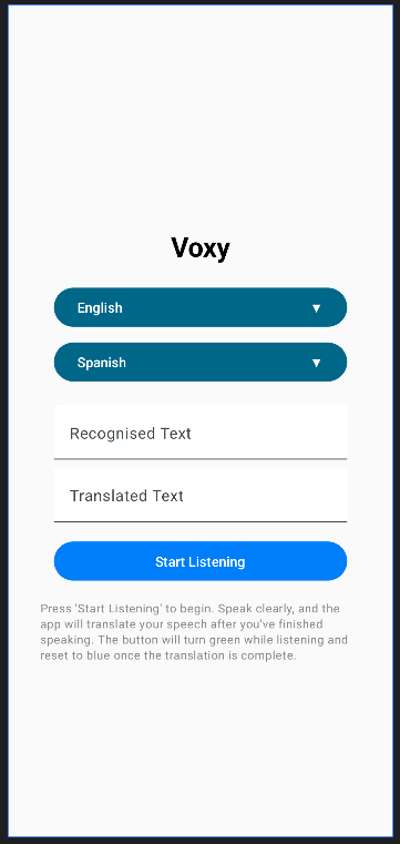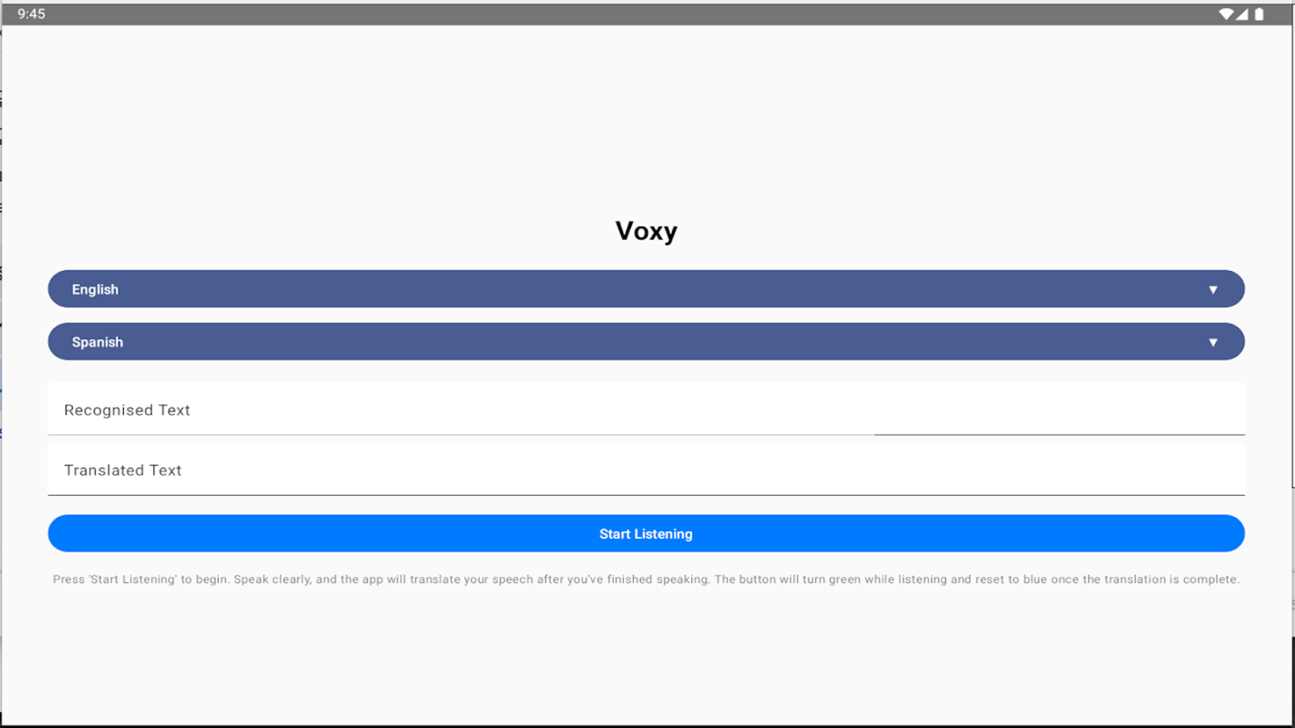تضمن تقنية التعرف على الكلام المتطورة لدينا أعلى دقة للتعرف على الكلمات المنطوقة وإنشاء الترجمات الصحيحة. بالإضافة إلى ذلك، فإن التصميم البديهي يجعل Voxy سهل التنقل وسريع الاستجابة، مما يضمن أن تكون ترجمتك جاهزة في أي لحظة.