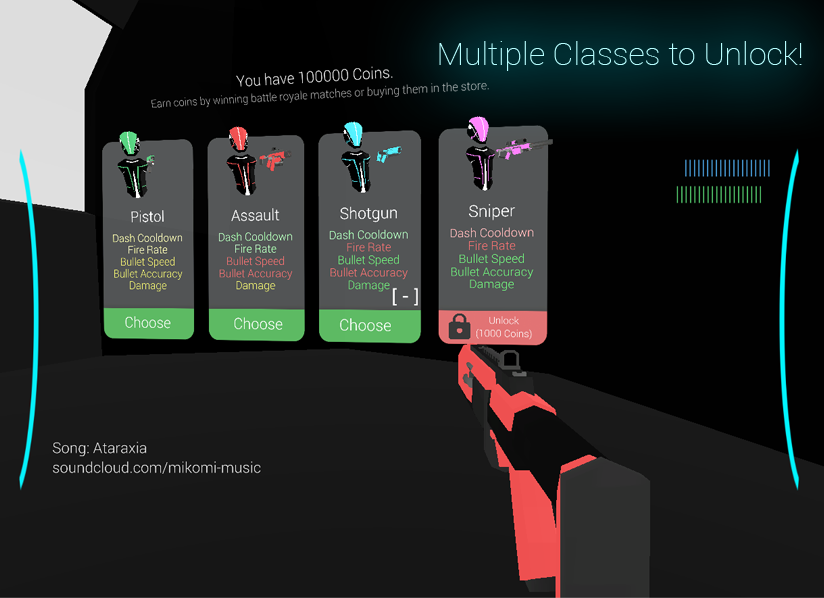 - Classes (Pistol, Assault, Shotgun, Sniper)