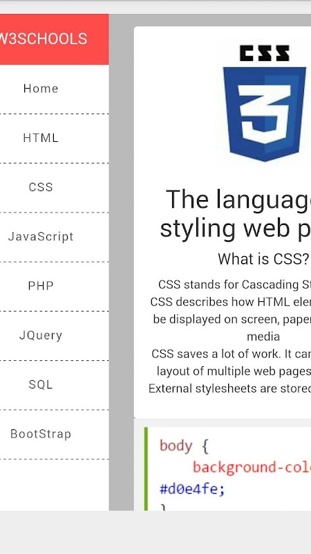 All W3Schools Languages Tutorials Are Given This Free Responsive App