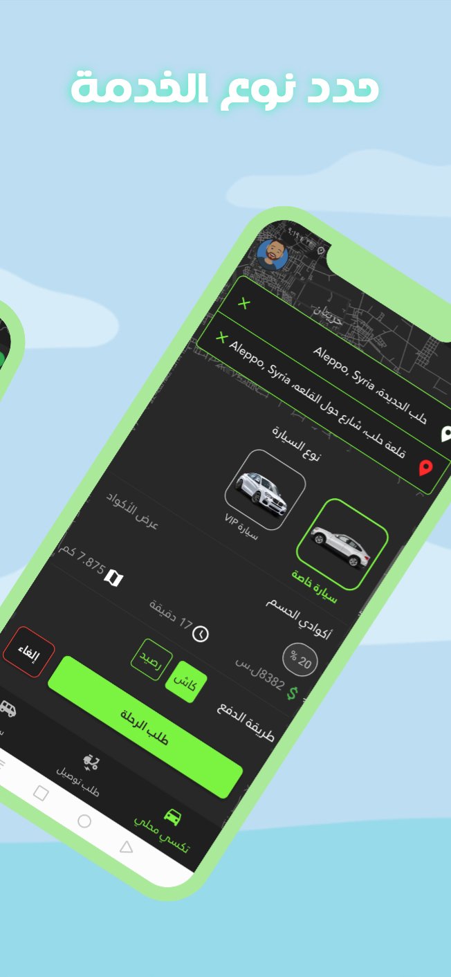وديني تطبيق لحجز سيارات وعمل رحلات في كافة مناطق حلب وبأي وقت.