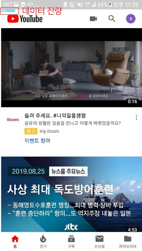 1. 유튜브를 깜빡하고 데이터를 켜놓은 채 열심히 시청하신 분들