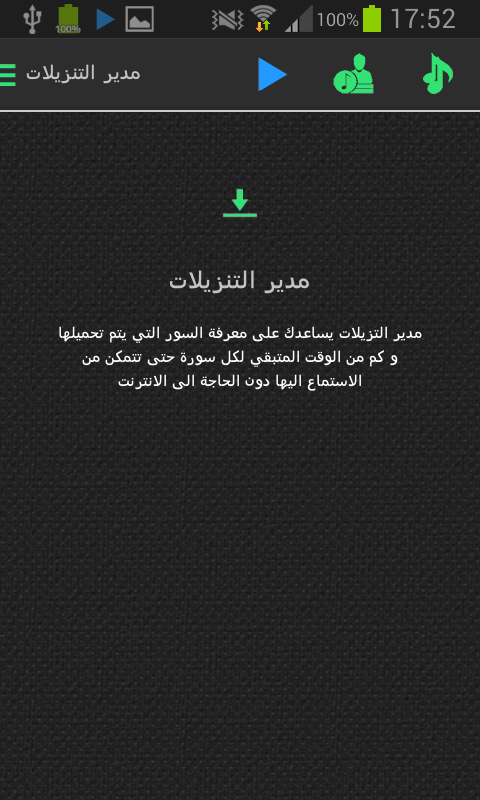 يمكنك التمتع بالإستماع ألى القرآن الكريم أيمنا كنت و بدون اتصال بالإنترنت. حيث يتيح لك التطبيق حمل السور إلى هاتفك.