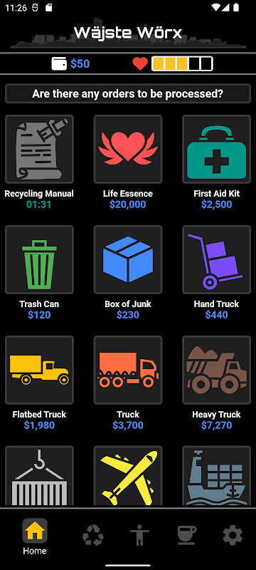 أداة نقر موارد عادية للمكتنز أو نظام إدارة النفايات؟ احصل على بعض المنتجات المهملة ، وأعد تدويرها عن طريق تفكيك كل عنصر ، واكتشف ما هو ذو قيمة ، أو نادر أم لا. ضع أي عناصر تستحق الحفظ وقم بتجهيز عناصر خاصة لاكتشاف أي خصائص ومكافآت خفية لسماتك. في نهاية اليوم ، ما يهم هو الإحساس بالهدف وربما فنجان قهوة حلو مع زملائه الزملاء.