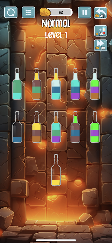 Try to sort the colored water in the bottle until all colors in the same bottle.