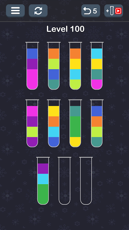 جرب هذه اللعبة واكتشف مدى ذكائك. ستستمتع وتتحدى نفسك أثناء لعب هذا اللغز. سيُحفز الماء الملون في الأنبوب مهاراتك في التصنيف الذهني. خصص سوائل بألوان مختلفة لكل أنبوب بحيث يمتلئ كل أنبوب بنفس الألوان المائية.