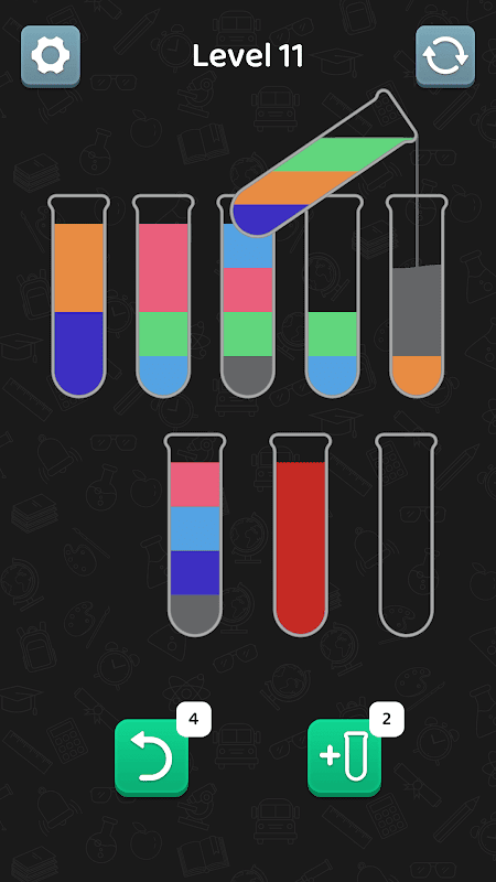 Water Sort is a fun, addictive and relaxing game for you!Train your brain by juggling the colours in different bottles.Let's see how good you are at solving the puzzle.