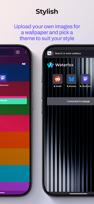 تم إعادة تصميم Waterfox Android بالكامل من البداية مع التركيز على الخصوصية كأساس. لا يوجد أي قياس عن بُعد، ولا جمع بيانات، ولا محتوى دعائي، ولا أي نوع من أنواع التتبع. لقد أنشأنا نسخًا تجريبية من خدمات التتبع للحفاظ على التوافق مع حماية خصوصيتك.
